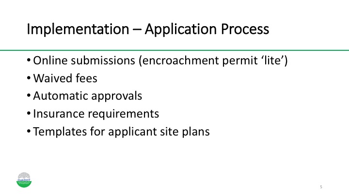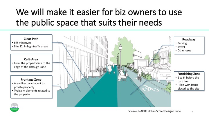 - Applicants are required to submit photographs taken from all directions to ensure sidewalk space remains passable. Staff also meets with business owners.