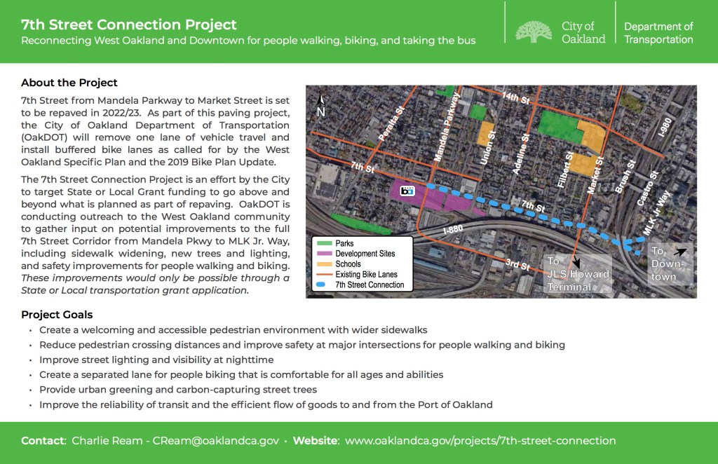 - Survey at oaklandca.gov/projects/7th-street-connection