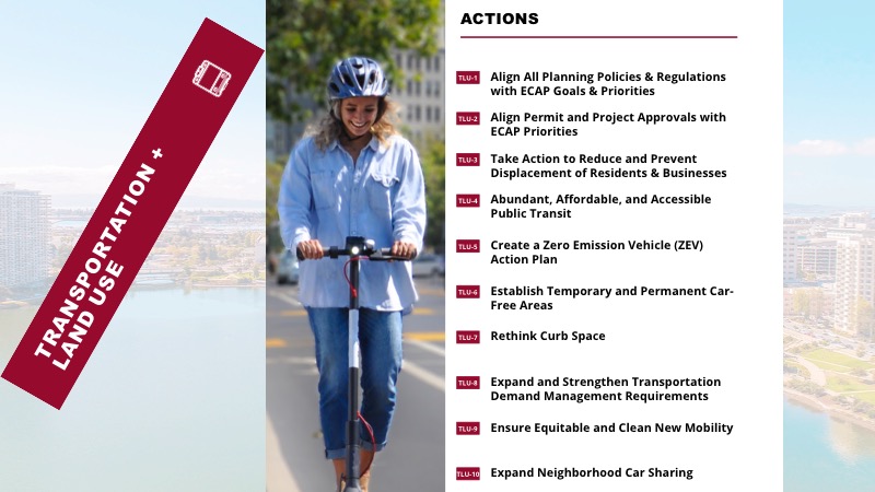 Download and view the full 2030 ECAP [PDF]. Here are a few excerpts from the Transportation & Land Use section:
