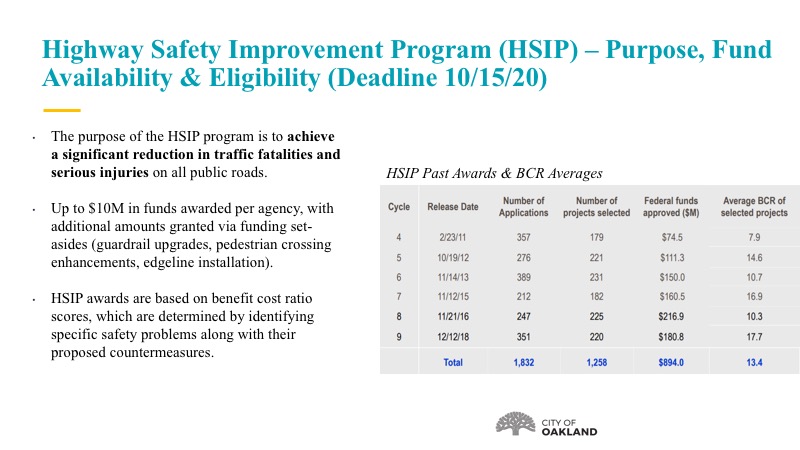 - HSIP Cycle 10 deadline: October 15, 2020.