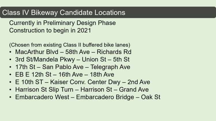 - Class 4 protected bikeway conversions construction to begin in 2021 (7 candidate locations chosen, full list in presentation).