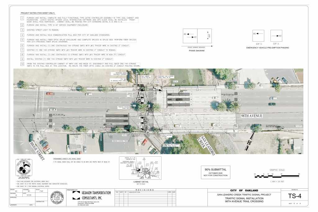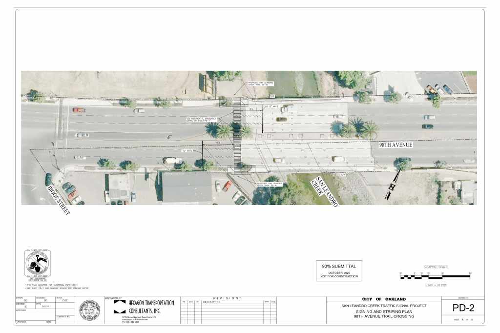 The presentation is below, as well as the 90% design plans for intersections where the greenway will cross major roadways at Hegenberger Road and 98th Avenue, and notes from the discussion.