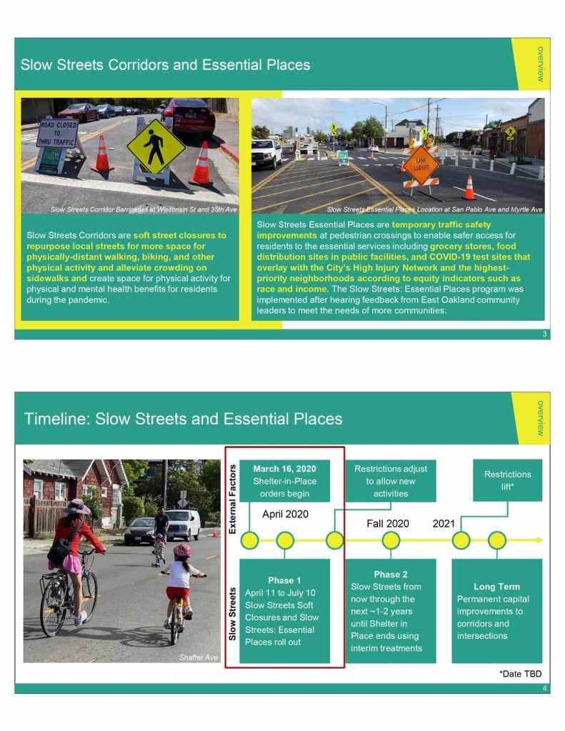 - Continue the Slow Streets Corridors and Essential Places Program through the end of the Shelter-In-Place order