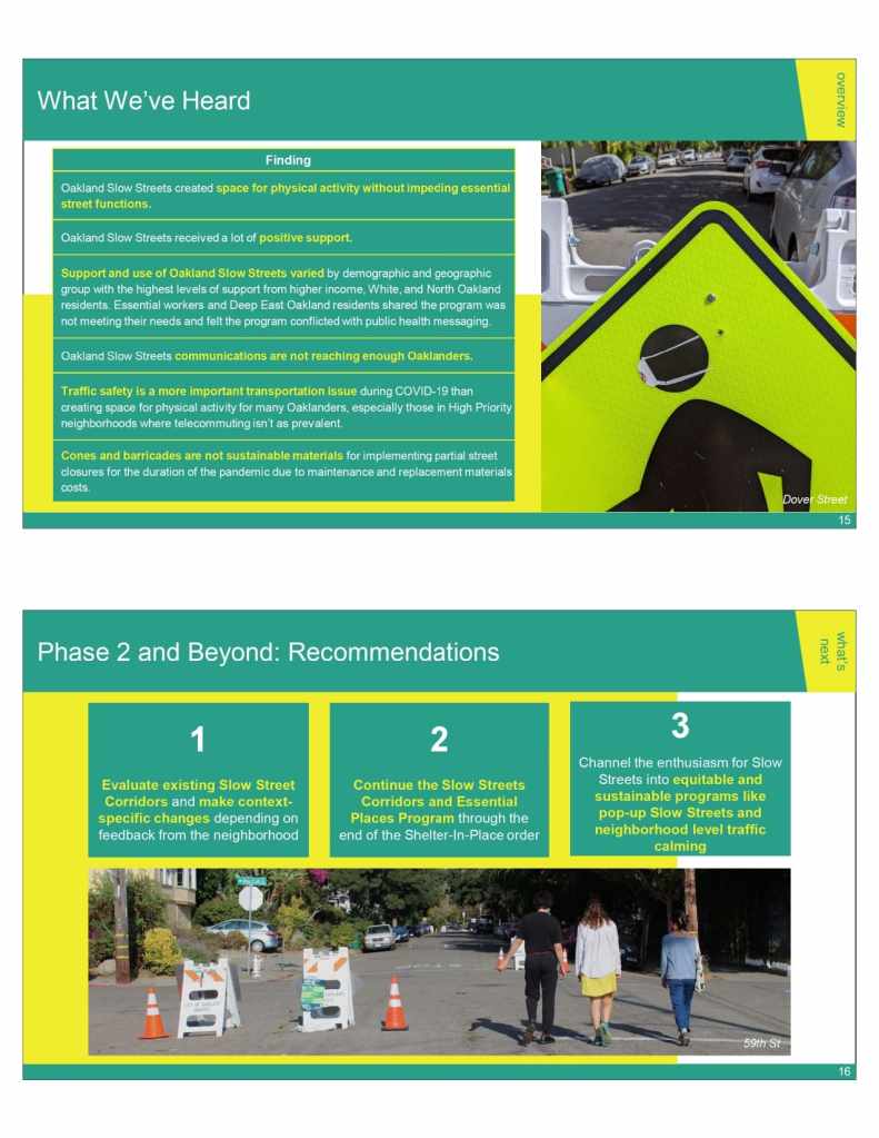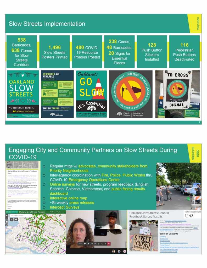 - Channel the enthusiasm for Slow Streets into equitable and sustainable programs like pop-up Slow Streets and neighborhood level traffic