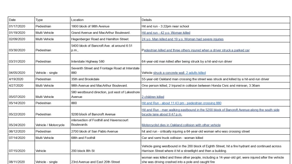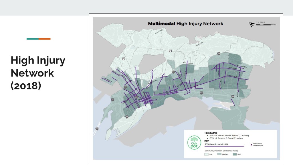 - OakDOT Traffic Incident Dashboard (real time info on collisions, hit and runs, fatal and serious injury incidents) – seeclickfix data also?