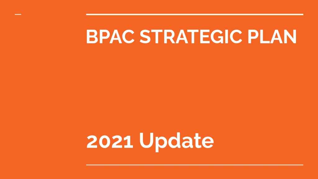 At the February 18, 2021 BPAC meeting, BPAC Strategic Planning Committee member, Jesse Jones, led the BPAC in a discussion on updating the BPAC Strategic Plan from 2020.