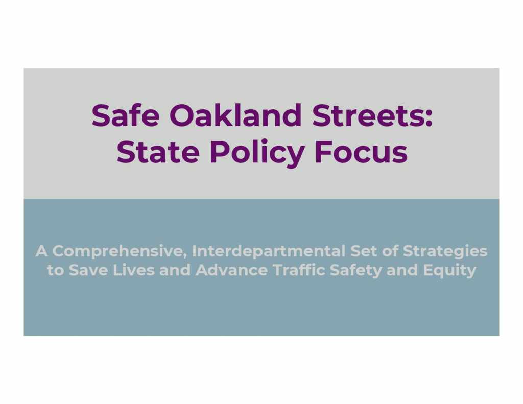 - AB 550 authorizes Oakland & 4 other CA cities to pilot automated speed enforcement; the City of Oakland would be capped at 18 Speed Safety Systems