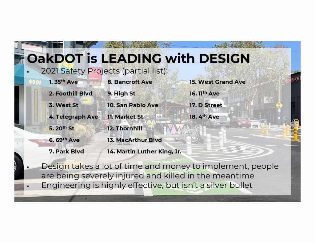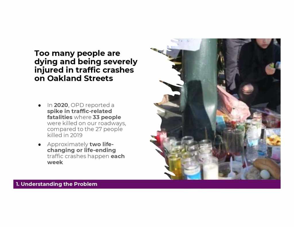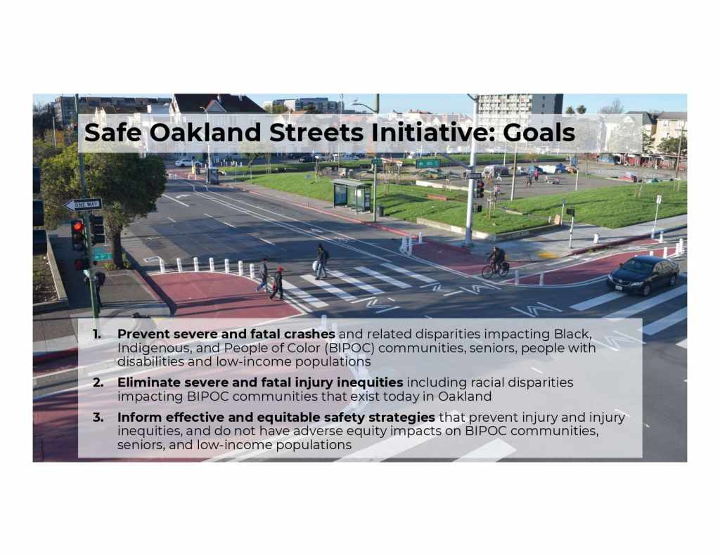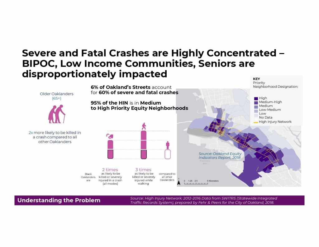 - Eliminate severe and fatal injury inequities including racial disparities impacting BIPOC communities that exist today in Oakland