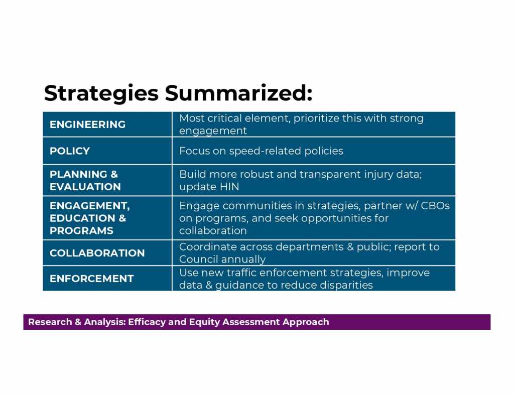 | Enforcement | Use new traffic enforcement strategies, improve data & guidance to reduce disparities |