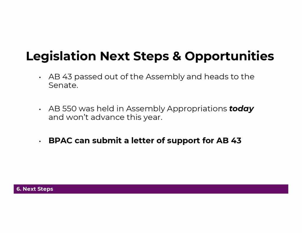 - Previous status: AB 43 advanced out of the State Assembly and will now be considered by the State Senate
