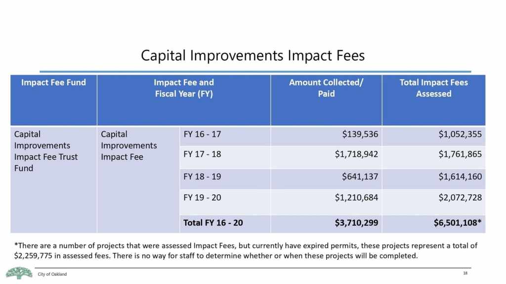 - For impact fees, the amount assessed tends to be more than the amount collected because portions of the fee are collected at different points in the development process. Additionally, fees may be assessed for permits that eventually expire. If the development does not get built, the fee is assessed but not collected.