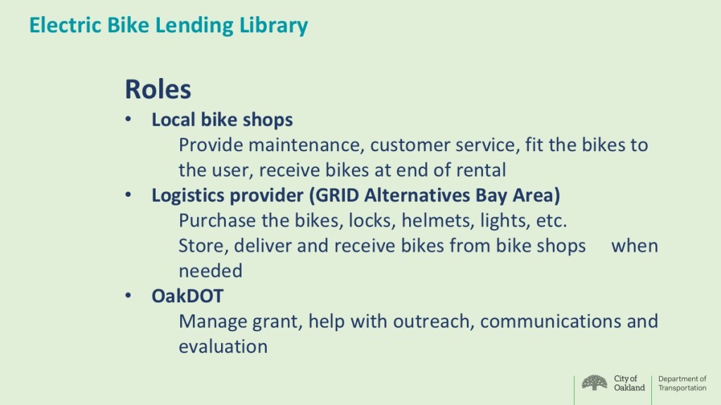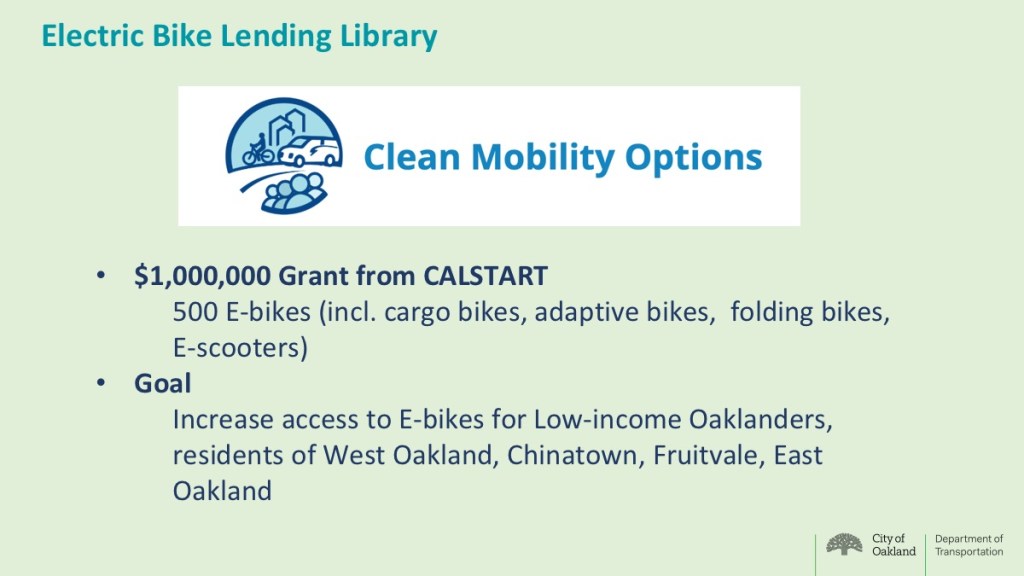 Increase access to E-bikes for low-income Oaklanders, residents of West Oakland, Chinatown, Fruitvale, East Oakland