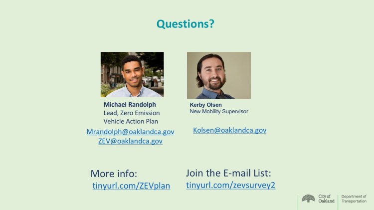 - Community Workshops 1 (Summer 2021) – Identifying Barriers and demystifying ZEVs, focus on West Oakland, Fruitvale, Deep East Oakland