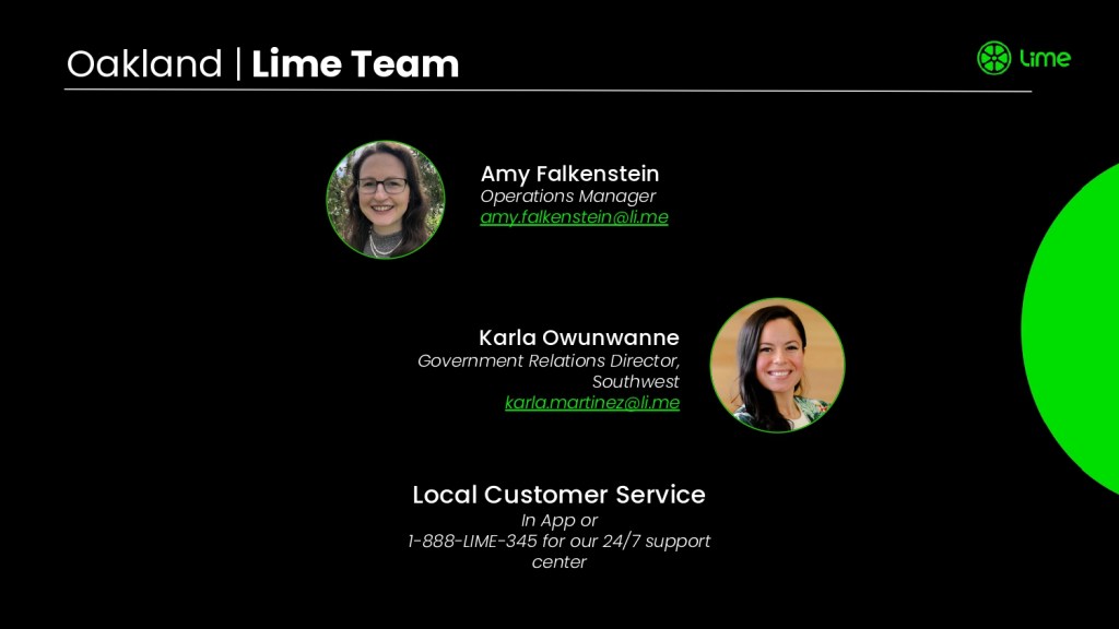 “Once we launch, Lime plans to work directly with the City to focus daily deployment and rebalancing of our scooters to ensure that at least 50% of our fleet is located in Communities of Concern. Our goal is to ensure that we truly are serving all of Oakland in an equitable, sustainable, and demand-responsive manner.”