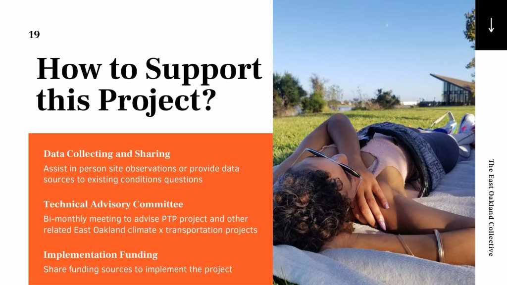 Power the People: Martin Luther King Jr. Shoreline Access Study, is a project that will explore the feasibility of creating a new Non-Fare zero emissions bus route along 73rd Ave and other clean mobility options that will bring East Oakland residents from 94603, 94605 and 94621 zip codes to the Martin Luther King Jr. Shoreline park. In the belief that the same neighbors of East Oakland deserve better neighborhoods, this project aims to model how community can plan for improvements without displacing existing low-moderate income BIPOC residents.