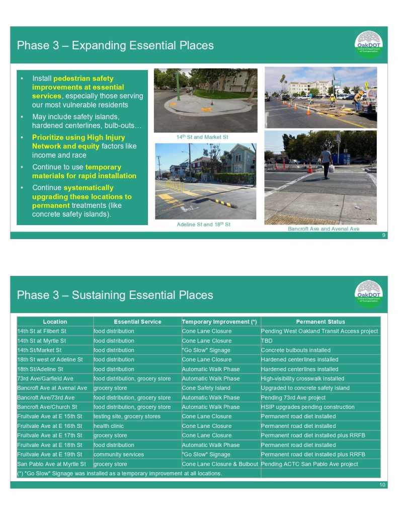 - 1. Expand Essential Places: Prioritize essential services for quick build and permanent pedestrian safety projects.