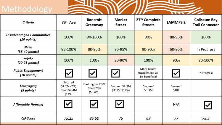 At the February 17, 2022 BPAC meeting, OakDOT Transportation Planner Julieth Ortiz presented on the proposed transportation projects for the Active Transportation Program (ATP) Cycle 6 and provide an update on the status of projects from previous ATP awards. ATP is a biannual competitive funding opportunity for projects that encourage increased bicycling and walking. The ATP is a state-administered program that distributes both state and federal funds. Applications for this year are due in June.