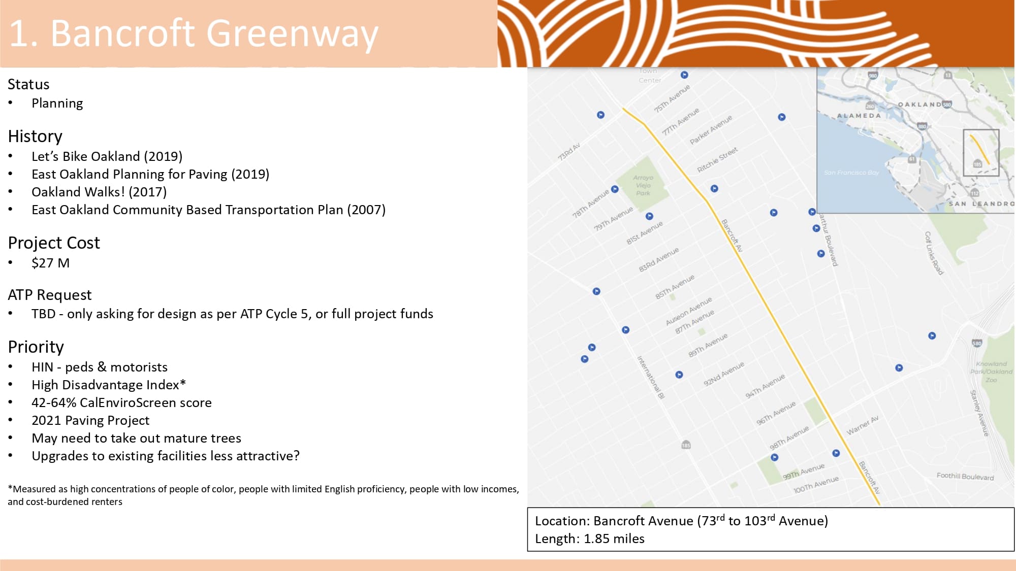 - Bancroft Ave Greenway, Design (previously submitted, ATP Cycle 5)