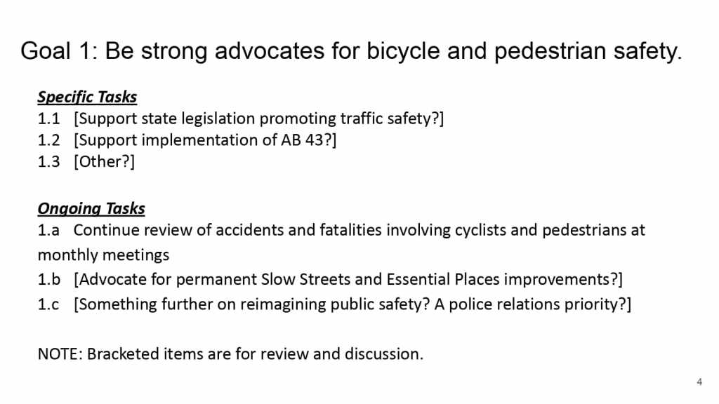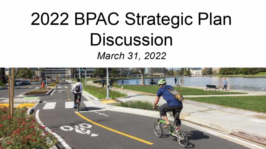 | 6:30 | 5 | Strategic Planning (60 minutes) below BPAC Chair Patricia Schader and Vice Chair Dianne Yee will lead the BPAC in updating the 2021 Strategic Plan by reviewing BPAC committees and liaison roles, past achievements, goal-setting for 2022, and planning with an eye towards equity, relationship building/community engagement, and alignment with the needs of Oakland’s diverse communities. |