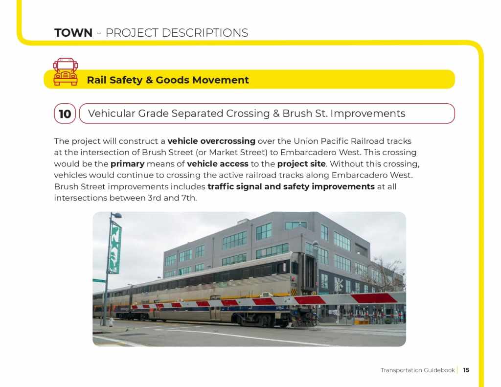 Rail corridor and roadway improvements to help efficiently move trucks and cargo in and out of the Port of Oakland, reduce traffic congestion and truck idling, and improve traffic safety for all.