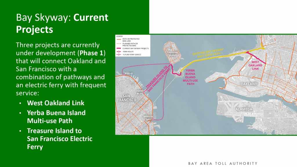 At the December 15, 2022 BPAC meeting, Gavin Lohry, Project Manager for the Bay Area Toll Authority of the Metropolitan Transportation Commission, will provide an overview of the Bay Skyway and the current projects that are under development and will provide an active transportation connection between San Francisco, Treasure Island, and the East Bay.