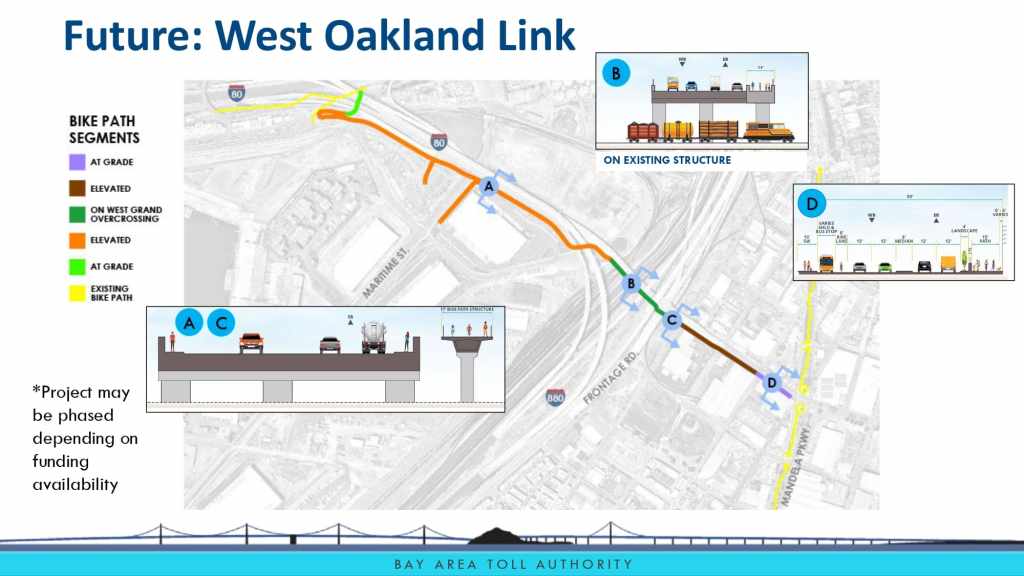 - The West Oakland Link and Bay Skyway will provide a great long-distance connection for bicyclists in Oakland and the East Bay who aren’t comfortable riding in traffic. There is significant demand for this is as currently there are not many places where this is possible.