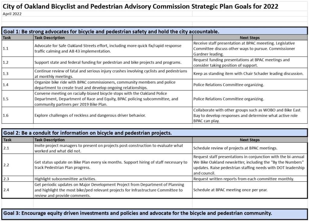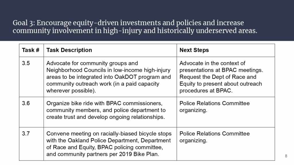 - The Bicycle Pedestrian Police Relations Committee could become a liaison between the BPAC and the Oakland Police Department.