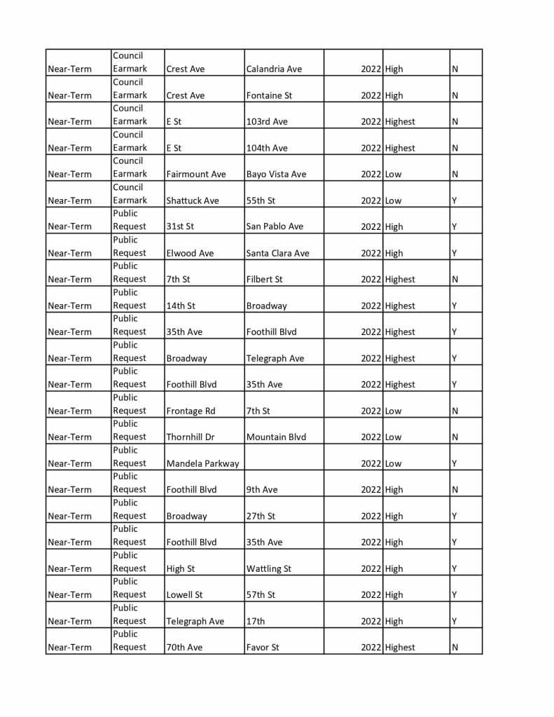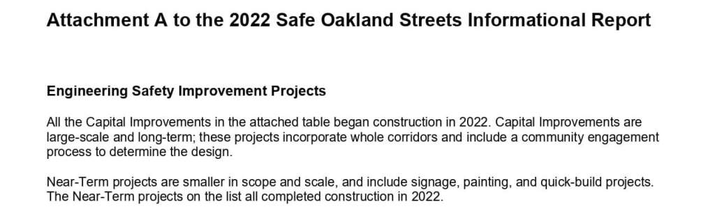 Attachment A to the 2022 Safe Oakland Streets Informational Report