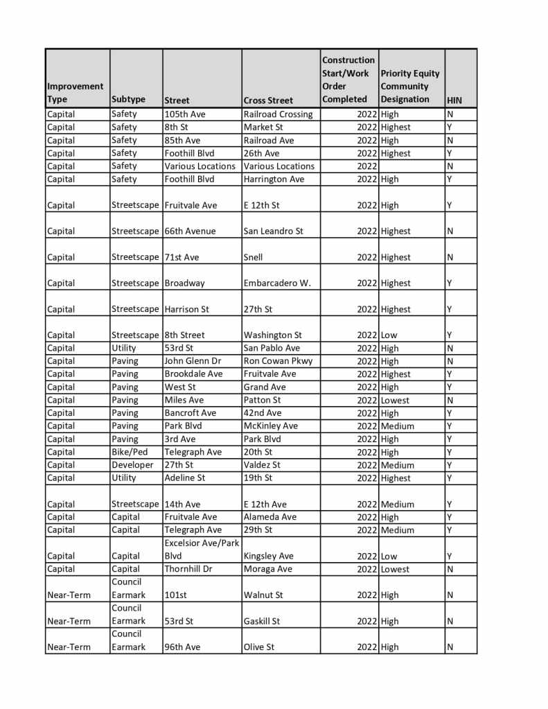 All the Capital Improvements in the attached table (below) began construction in 2022. Capital Improvements are large-scale and long-term; these projects incorporate whole corridors and include a community engagement process to determine the design.