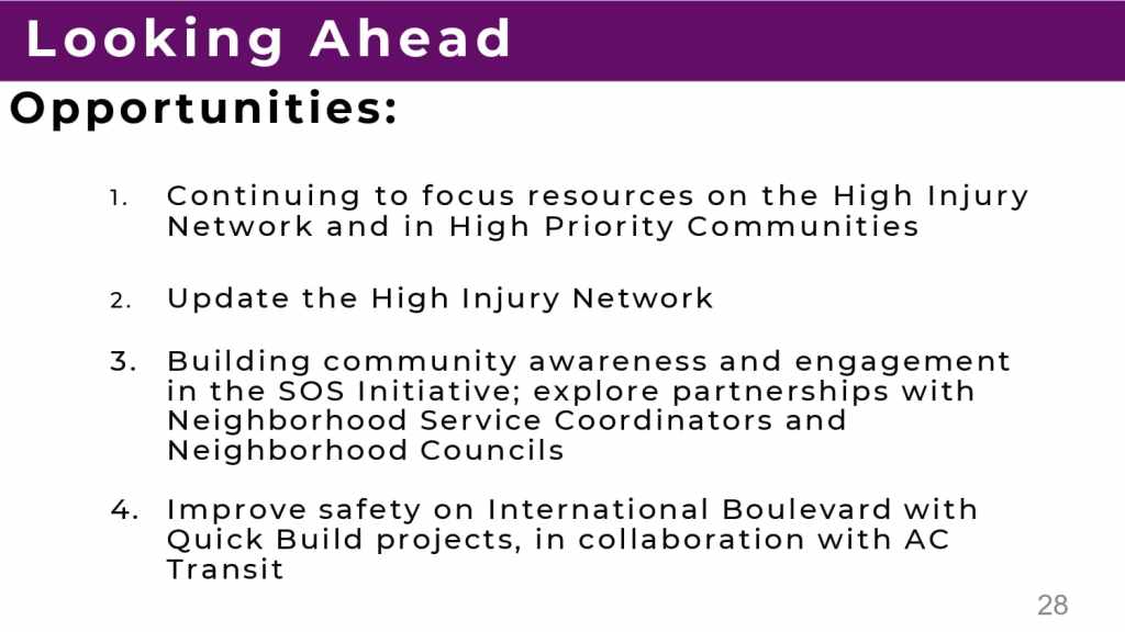 - Improve safety on International Boulevard with Quick Build projects, in collaboration with AC Transit