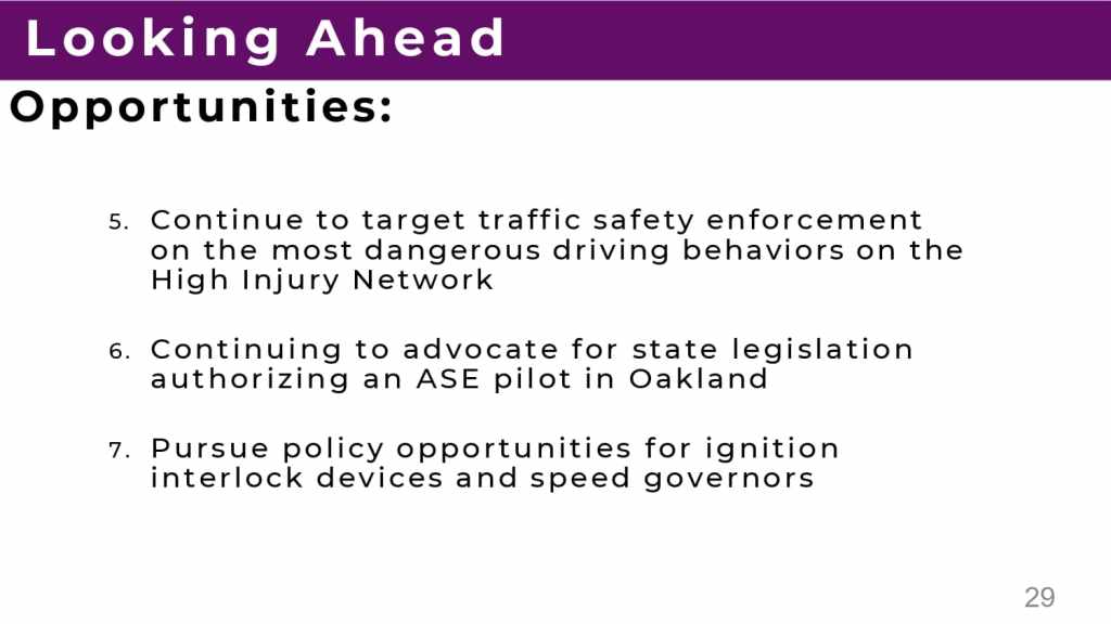 - Continuing to advocate for state legislation authorizing an ASE pilot in Oakland