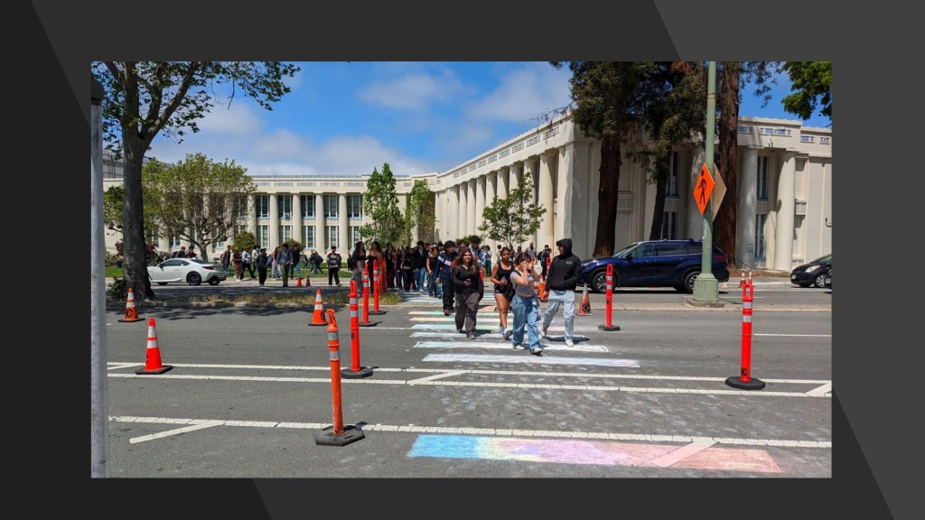- Thousands of students using the crosswalk comfortably