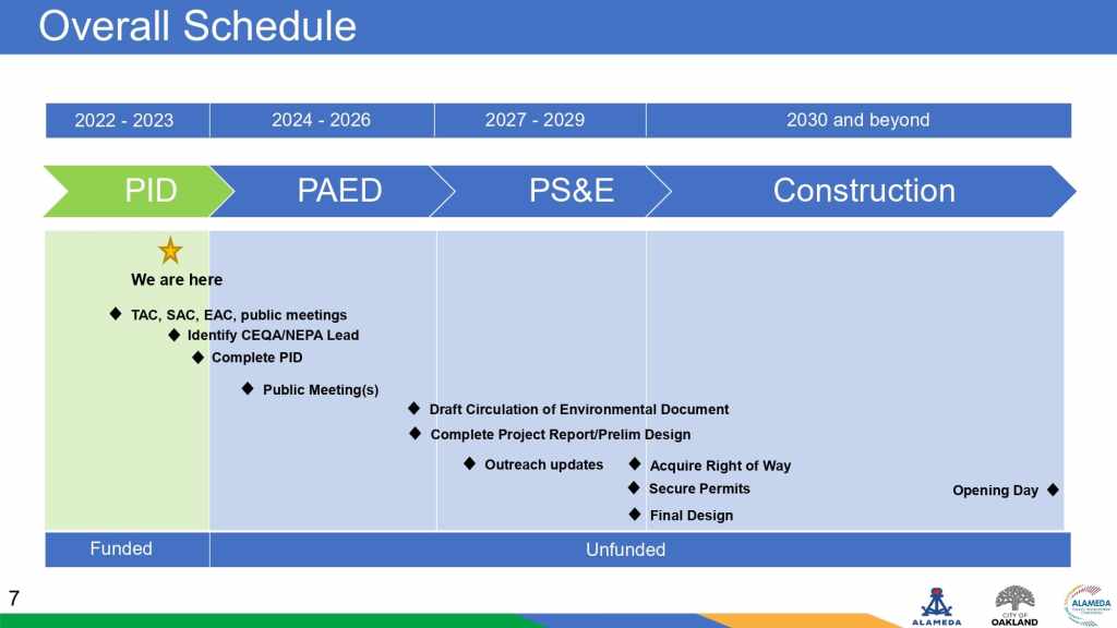 - Partnership between cities of Oakland & Alameda, with Alameda taking the lead, though a more regional agency may take over as the project proceeds to future phases