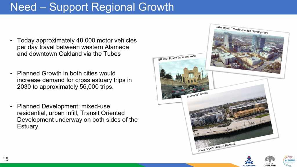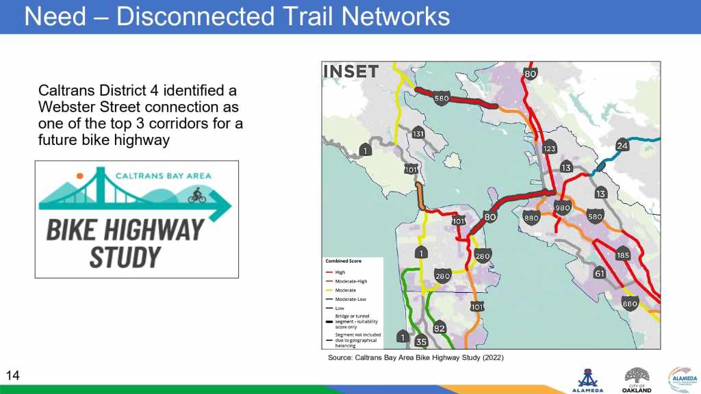 - Separate Oakland-Alameda Access Project will open a second path for biking & walking through the Webster Tube, but this will still be a narrow and unpleasant facility that most people will not use.