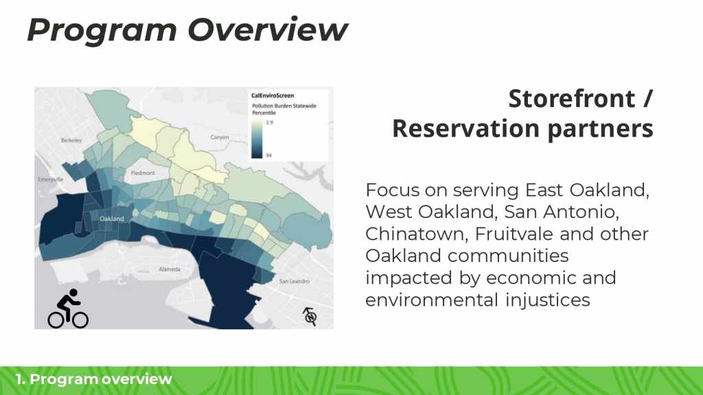 - GRID Alternatives is no longer involved with this project. OakDOT staff are engaging with possible reservation partners, who will be involved with lending and limited bicycle maintenance.