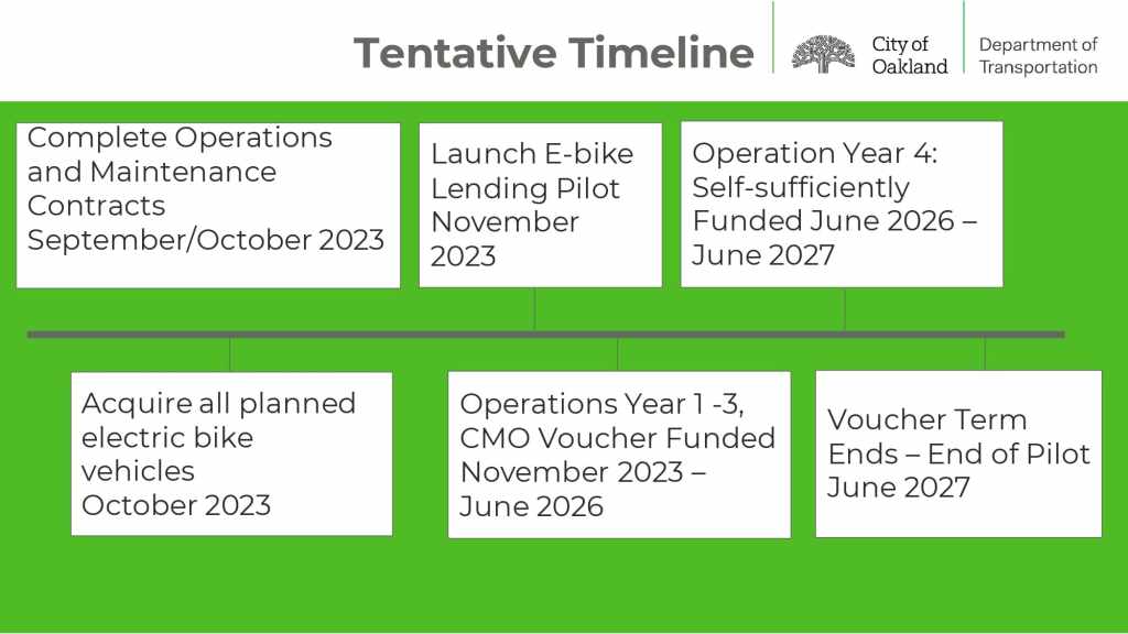 - East Bay Community Energy may also be pursuing a similar electric bicycle lending program, in parallel with the City’s pilot program.