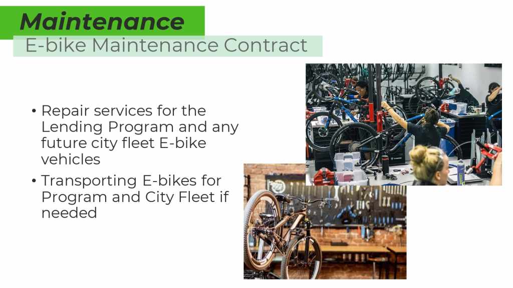 - A fee-based program (with $250 deposit) may be less accessible to members of the public who cannot afford it. The program may create capacity to allow electric bicycle lending for those who cannot afford the low-income $5-per-week lending fee.