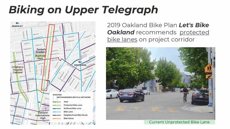 At the September 21, 2023 BPAC meeting, Charlie Ream and Cathy DeLuca, transportation planners from OakDOT’s Planning & Project Development team, will provide an introduction to a paving project on Telegraph Ave between 52nd Street and Woolsey Street. Staff recently kicked off the project and is seeking commissioners’ feedback on initial conceptual designs.