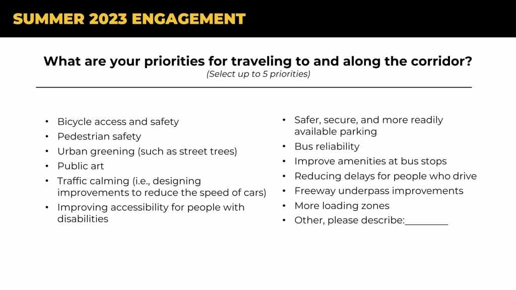 - Over 500 responses for Broadway survey, over 200 responses for MLK Jr Way survey