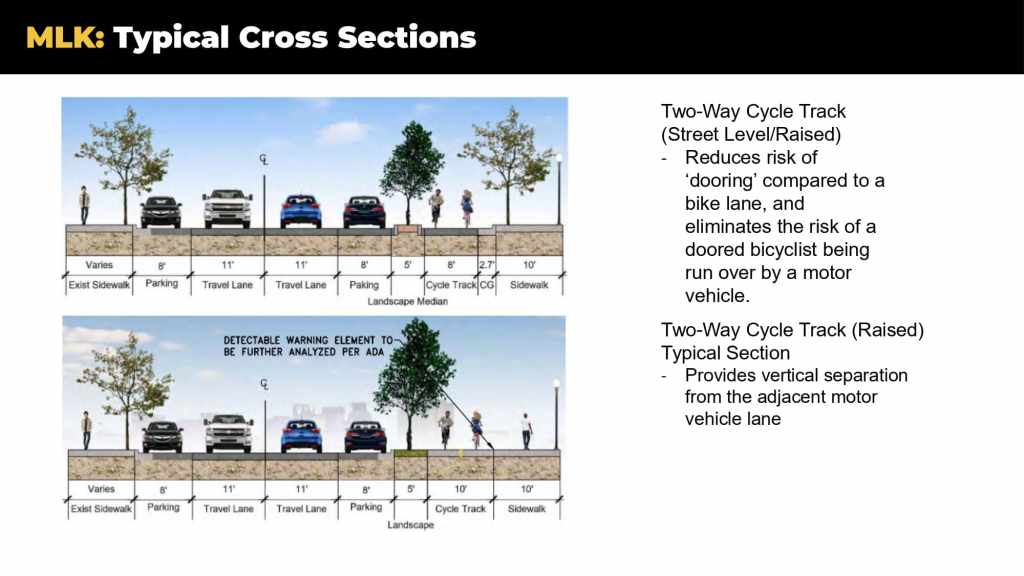 - Comment: Like raised cycle track concept, but not sure why MLK was selected.