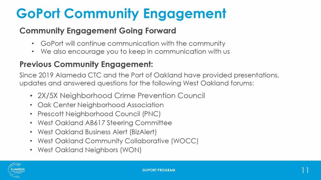 - Currently in talks with the City of Oakland, Bay Conservation and Development Commission (BCDC), and others.