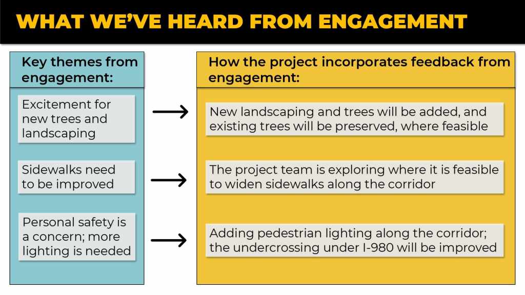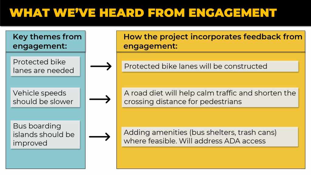 - As part of this project the street will be fully repaved, though there weren’t a lot of comments made about this via the community engagement.