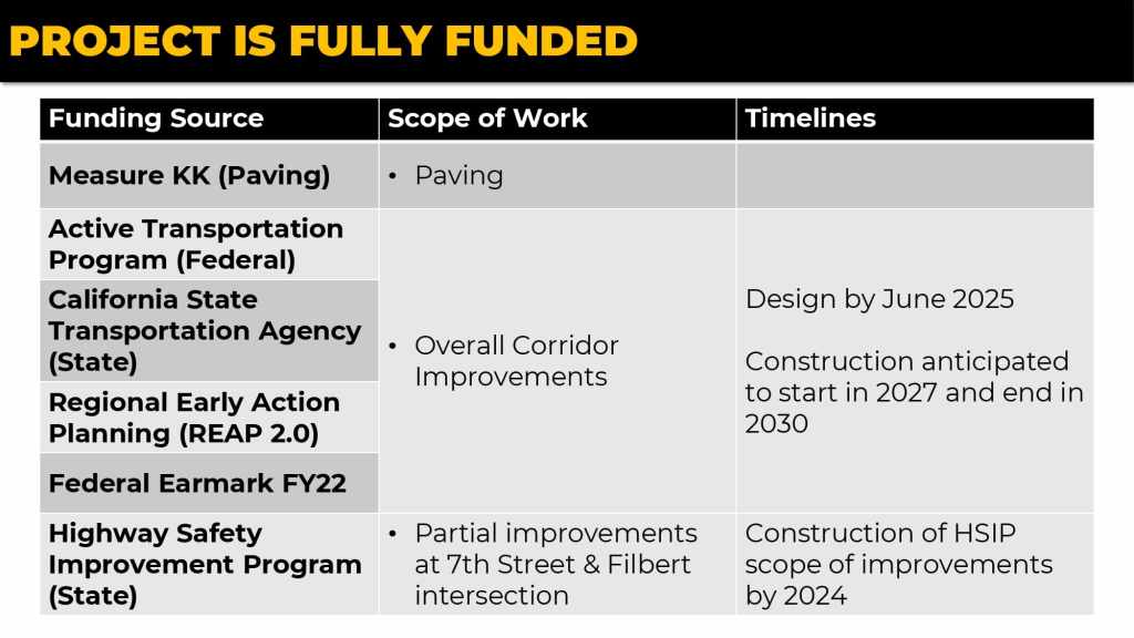- Partial improvements at 7th Street and Filbert to be constructed in 2024.