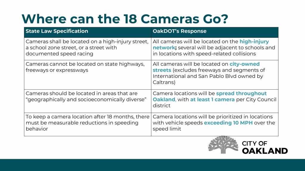 - The number of cameras is limited based on the city’s population: Oakland gets 18 camera systems