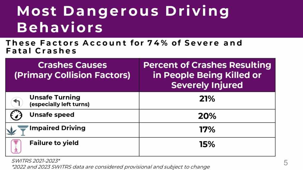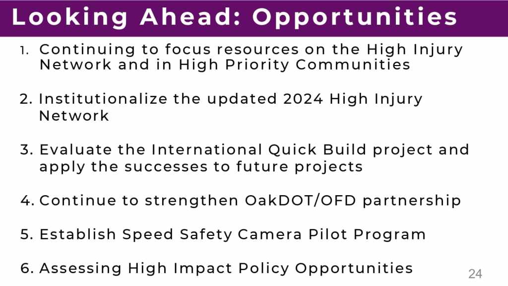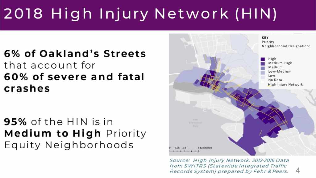 - 6% of Oakland’s streets account for 60% of severe and fatal crashes.