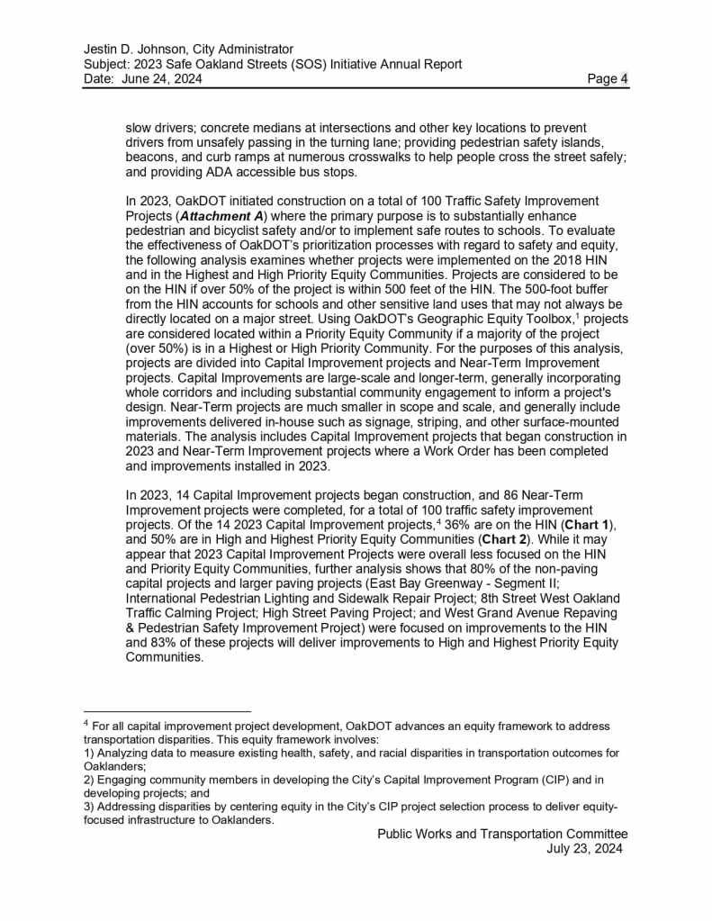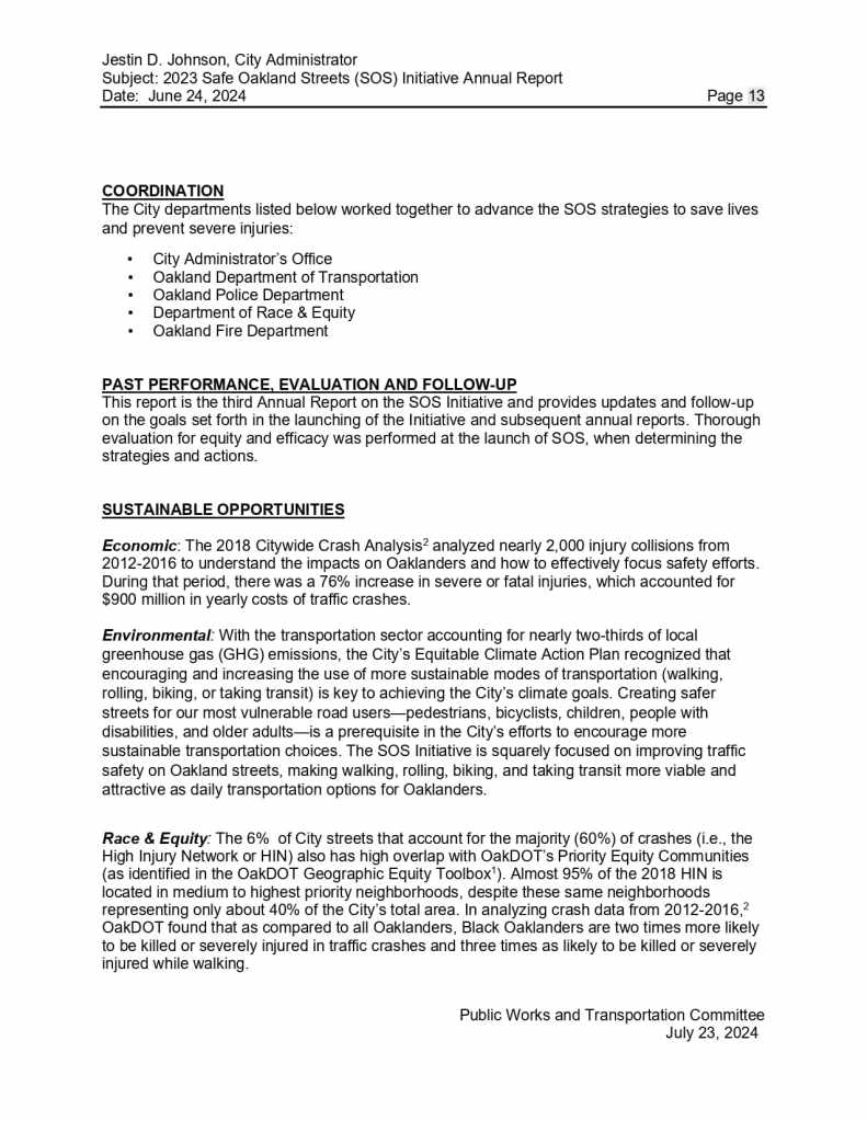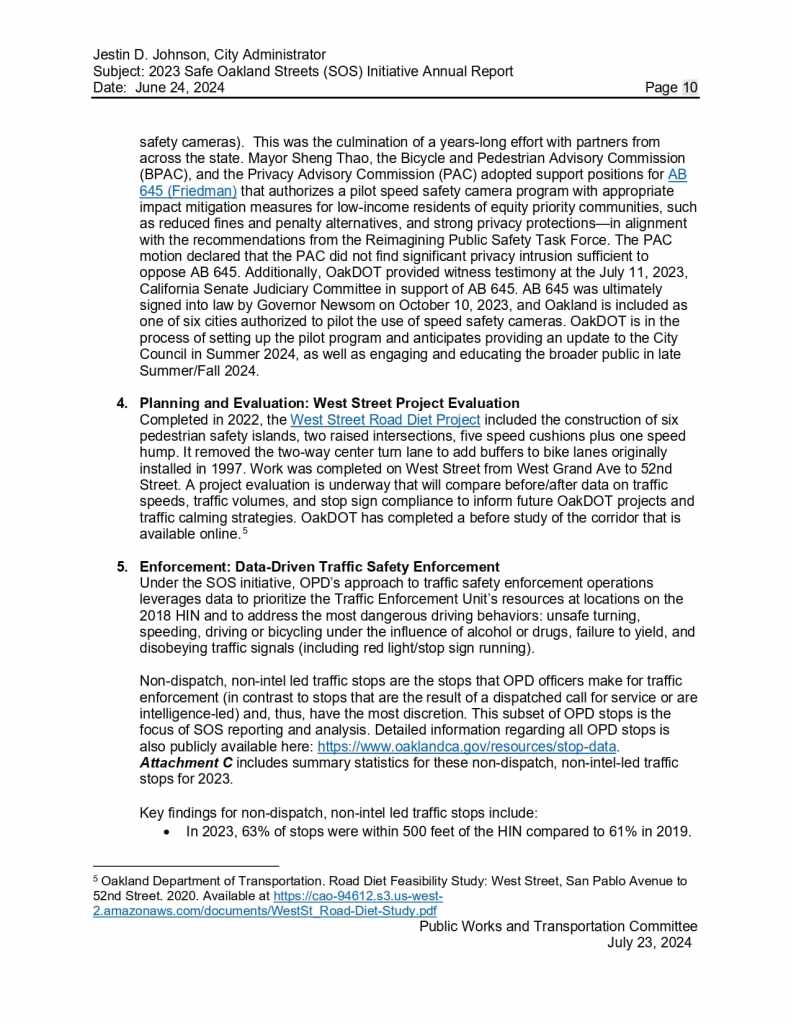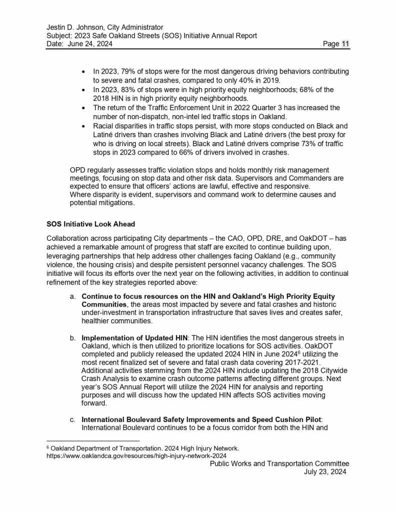 At the September 19, 2024 BPAC meeting, OakDOT Safe Oakland Streets Coordinator (SOS) Mica Amichai will present information from the 2023 annual Safe Oakland Streets update.
