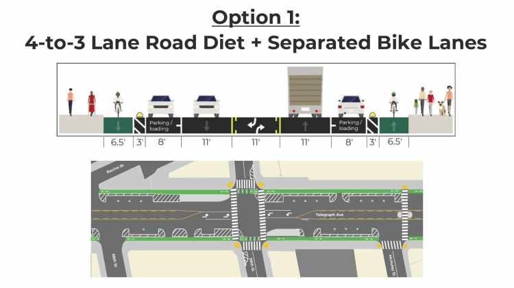 At the November 7, 2024 BPAC Infrastructure Committee meeting, Cathy DeLuca, Oakland DOT staff, provided an update on the Upper Telegraph Avenue Complete Streets Project (52nd St to Woolsey St), including information on the decision to move forward with a 4-to-3 Lane Road Diet design alternative.