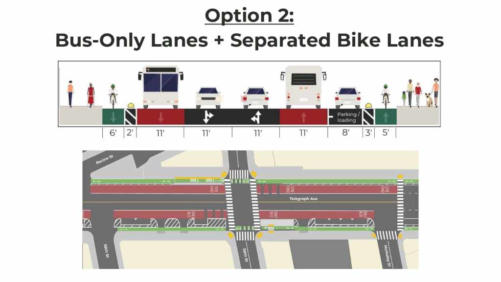 - Option 2: Bus-Only Lanes + Separated Bike Lanes