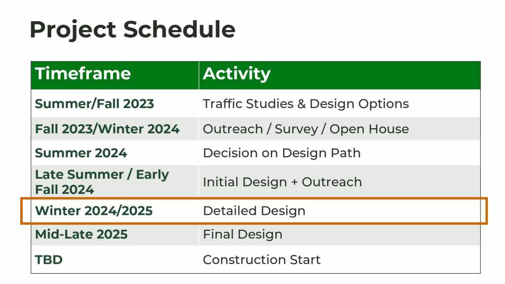 - Option 1: 4-to-3 Lane Road Diet + Separated Bike Lanes