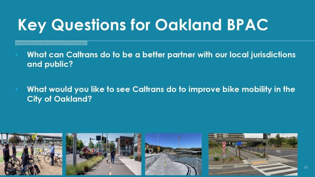 - What would you like to see Caltrans do to improve bike mobility in the City of Oakland?